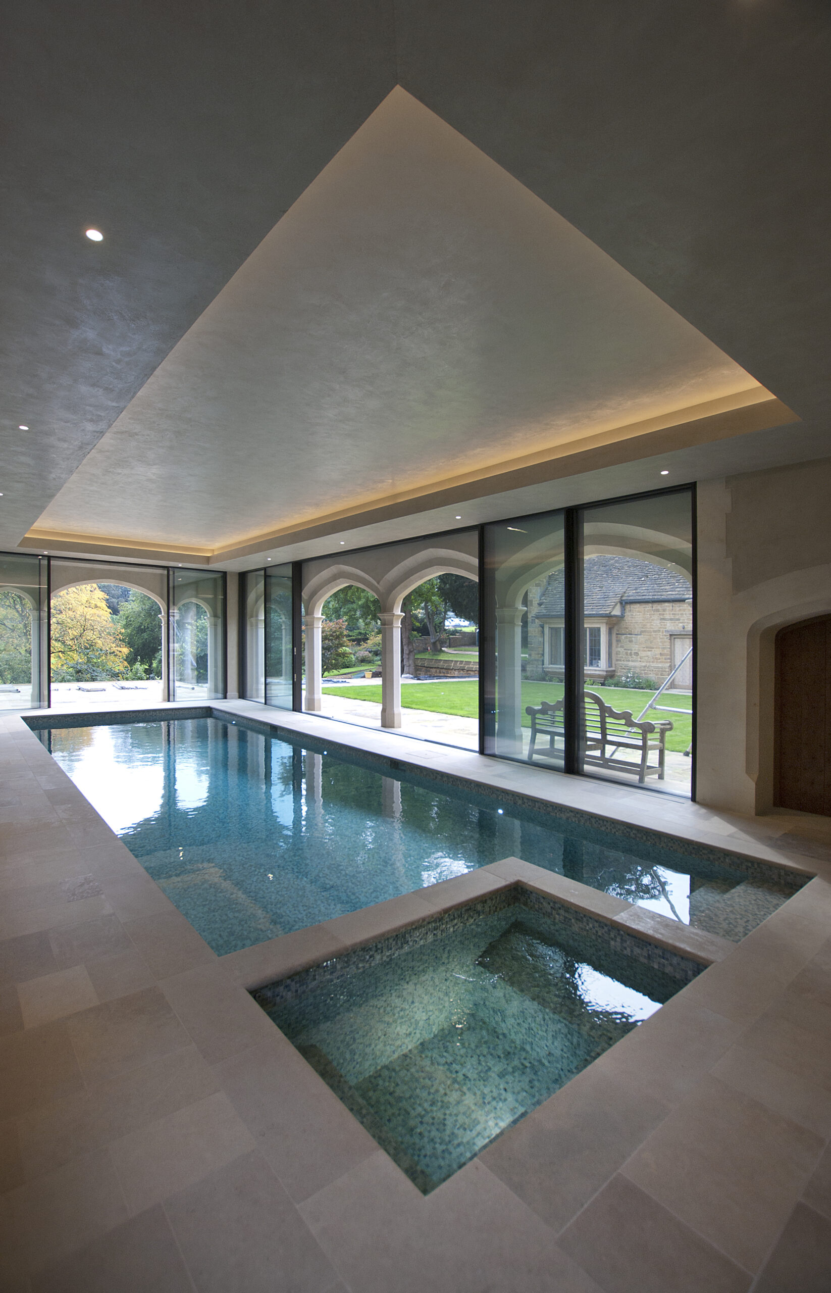 Smith Heritage are experts in creating truly impressive leisure structures in listed, period or other unique settings. We’ve created a pool in a Grade II* listed ‘castle’ property, surrounded by historic stone columns and arches, with automated sliding screens. Other projects have included a pool pavilion with bespoke glazing that retracts downwards into the floor. Handmade mosaic tiles, waterproof polished plaster for classical designs, invisible audio systems and efficient ground- or water-source heat pump systems can all be features of your new leisure facilities.
